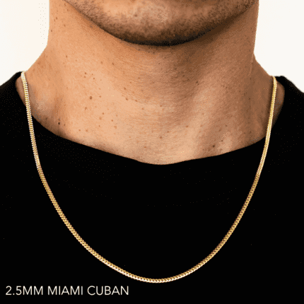 14K 2.5MM YELLOW GOLD SOLID MIAMI CUBAN 20″ CHAIN NECKLACE (AVAILABLE IN LENGTHS 7″ – 30″)