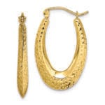 10K Textured Oval Hollow Hoop Earrings
