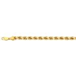 This 14 Karat Yellow Gold Diamond Cut Hollow Rope Chain is a classic chain that is loved worldwide. Made with authentic 14k yellow gold, this chain has small links that have been twisted into a rope-like style, which make them very durable. This chain comes with various lengths that will match your preference. This chain weights approximately 0.30 grams per inches and may not be exact.